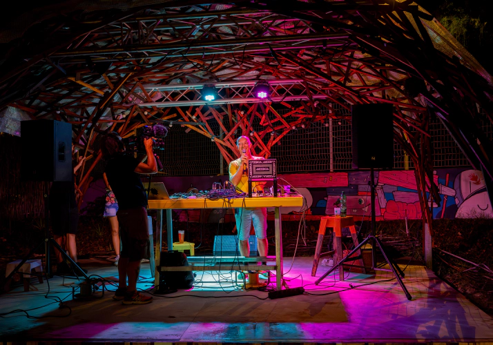 Nous valorisons les artistes locaux en leur donnant les moyens de partager et de présenter leurs œuvres ; concerts, théâtre, cirque, performances, scènes ouvertes, résidences d’artistes, cinéma, expos… Les arts visuels et vivants peï s’ouvrent à vous !